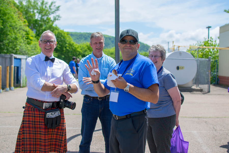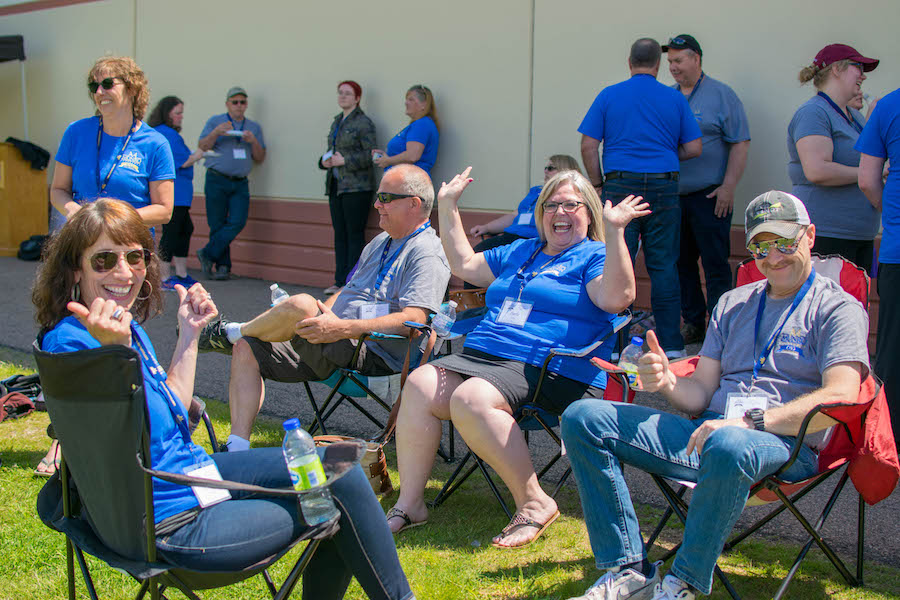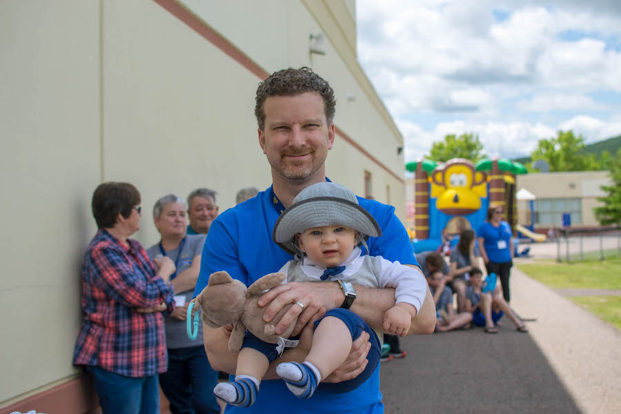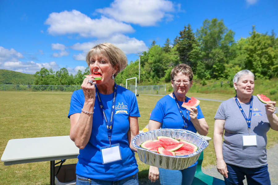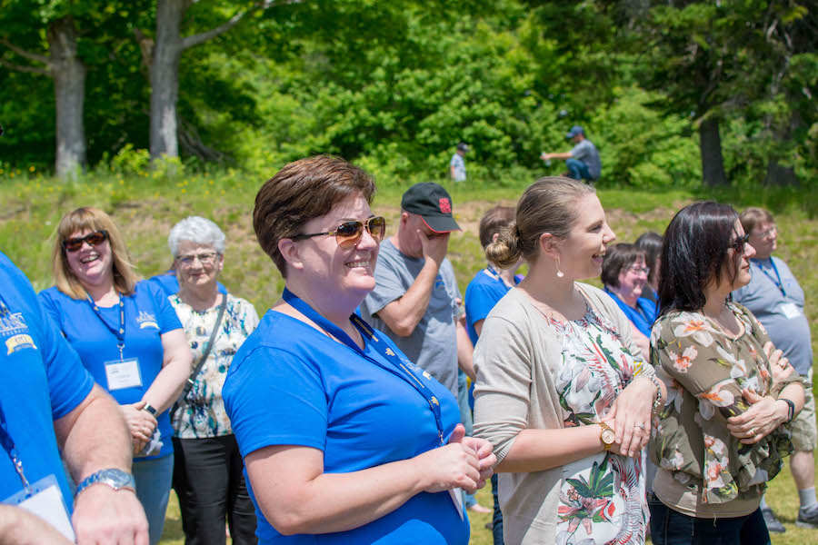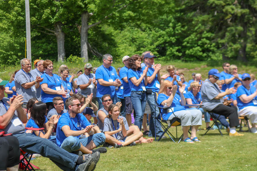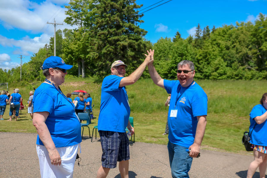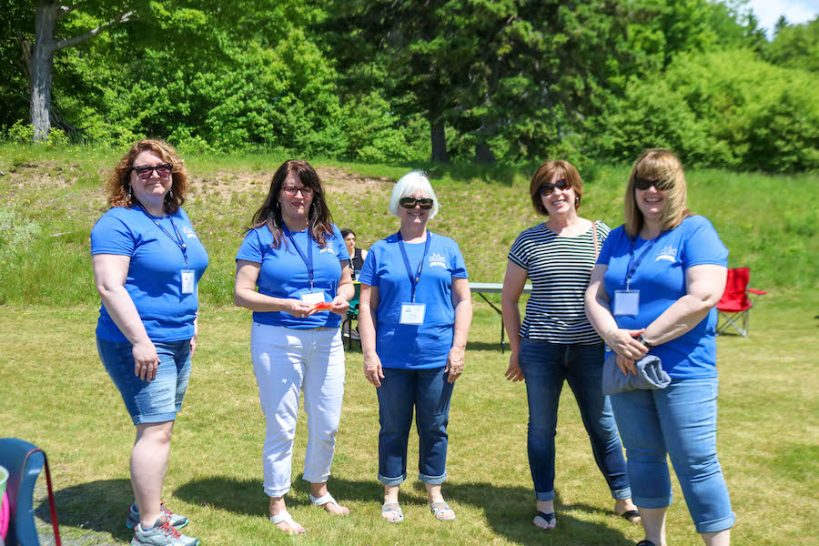 The sun shone during our 75th Anniversary BBQ in Whycocomagh. Blue skies. Blue tee shirts and big smiles.
