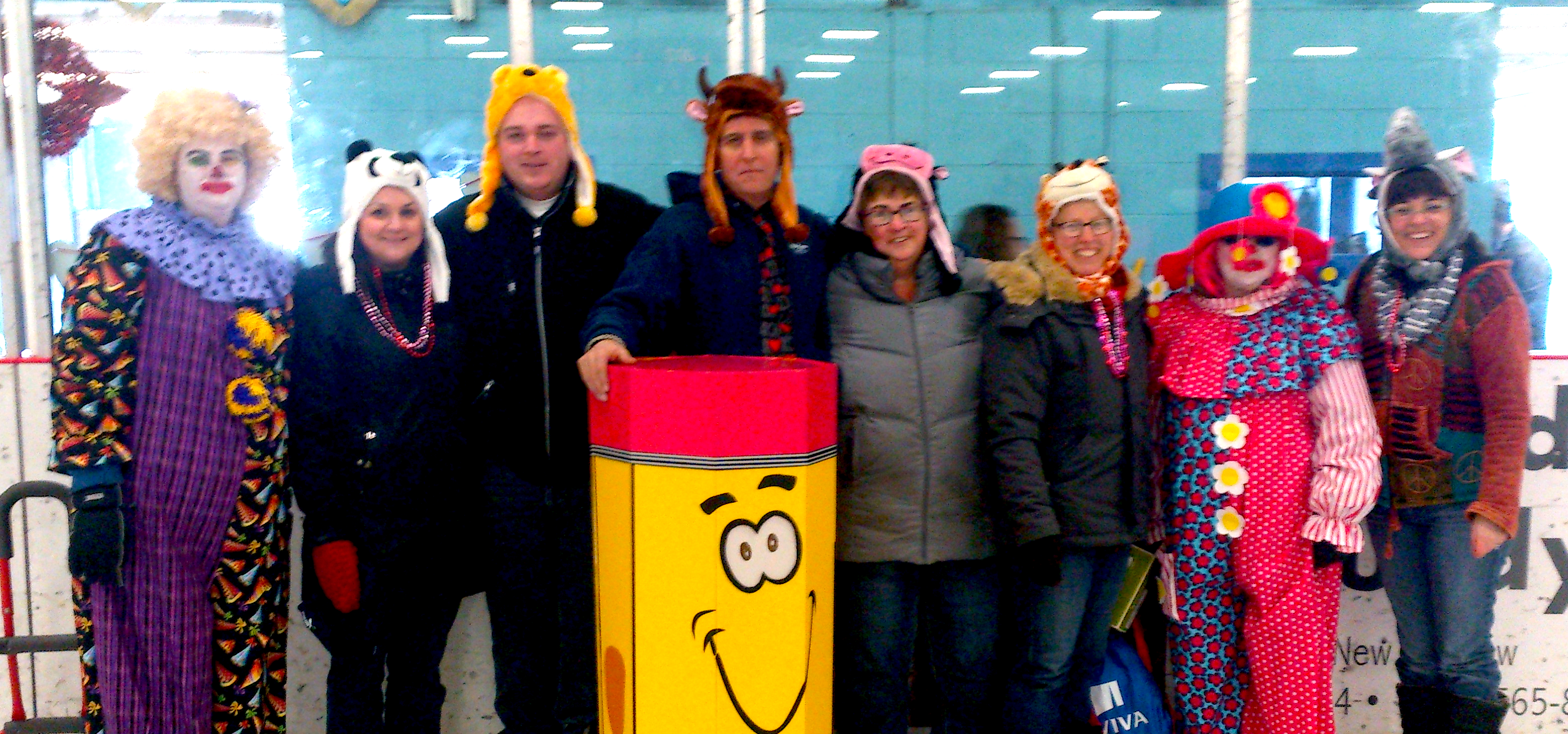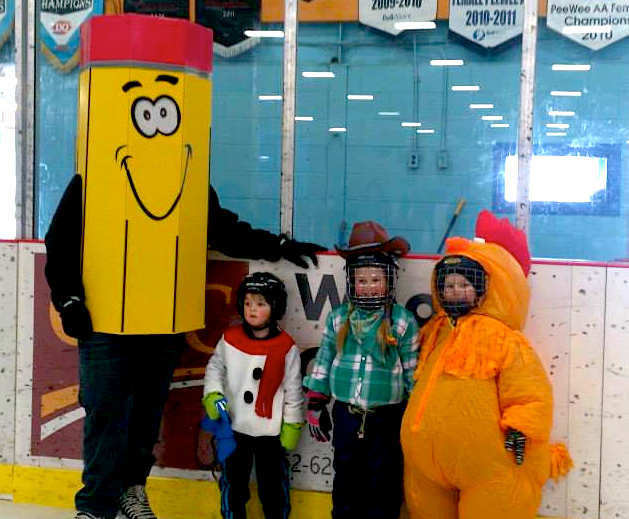 It’s not every Valentine’s Day that you dress up in a giant pencil costume on skates. This year, Zach hit the ice on February 14th as the AA Munro mascot at the Hector Arena during the Pictou Winter Carnival. His partner Hannah joined him, as did Mary from Elmsdale with her husband Gary. Tilda and Marie from New Glasgow were there, along with Tilda’s daughter Shanel. There were loads of kids, and of course the hosts and organizers of the whole event from Pictou, Georgie and Janice, were in fine form. “Anything Georgie does,” Zach said, “she always does such a great job, her and Janice.”