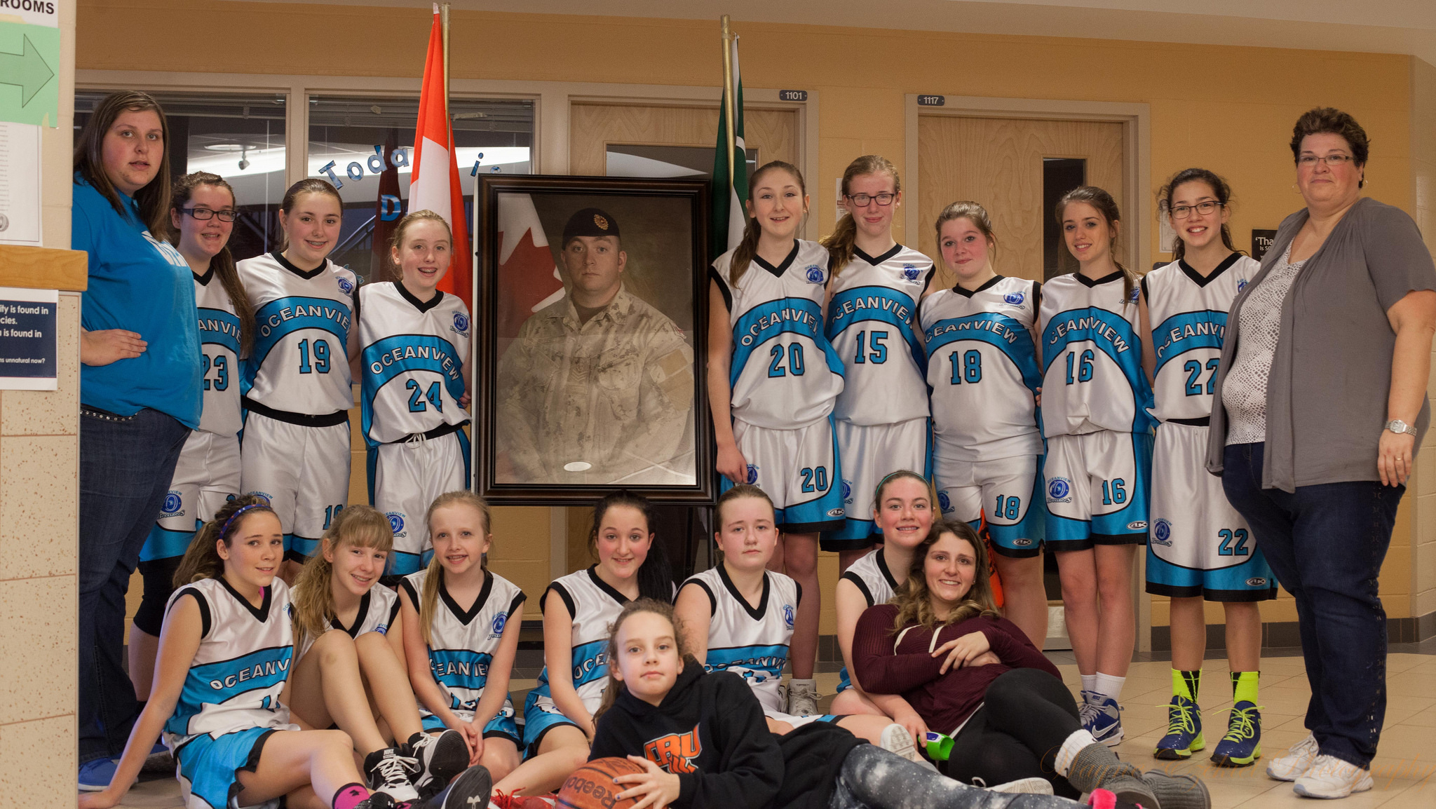 What do you do when a soldier dies? There are as many ways to pay respects as there are people to remember the fallen. When Sgt. James MacNeil of Glace Bay was killed in Afghanistan in 2010, thousands showed up to welcome the arrival of his body back to his native soil. There were ceremonies. There was a procession along the “Highway of Heroes”. His father got a tattoo of his portrait. His friends and family started a memorial mixed baseball event. Ocean View Education Centre dedicated a soccer field in his name and also began a memorial basketball tournament. MacNeil was very outgoing and loved sports. The basketball tournament recently completed its fifth year.