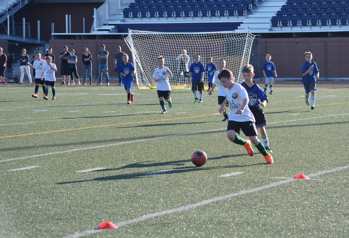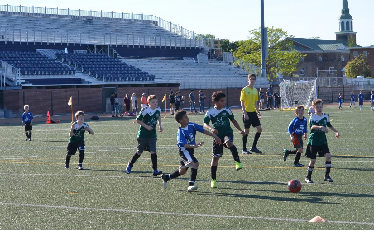 Maria’s son Mark plays on the team, wearing an AA Munro jersey. Mark’s on the turf regularly. Dribbling. Shooting. Learning how to encourage his peers.